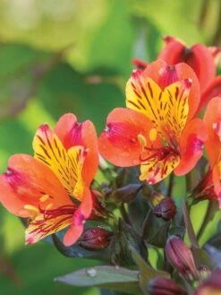 Beautiful sunset shades on top of neat dark green bronze foliage, Indian Summer is a perfect plant for floral arrangements. Flowering from June to November the compact plant habit produces tall upright stems perfect for a vase. This Peruvian lily is winter hardy to US zone 6 and will produce long lasting cut flowers for up to 5 months. Garden Alstroemeria will perform best in perennial plant border, but can also be planted in a container for display on a patio or balcony. The plants will benefit having their stems picked to make a pretty bunch of flowers for the vase.