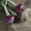 Long-day onion with globe-shaped, dark purple-red bulbs. Thick, smooth, complete skins with a glossy finish. Internal rings are red at harvest time, and the color improves in storage. Earlier maturity ensures fully dormant bulbs after curing. Large to jumbo size potential. Long storage (up to 6 months in our trials).