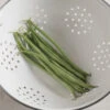 Avg. 6–6 1/2″ flat pods are pale yellow with purple streaks. They are tender, sweet, and good in salads or cooked. Purple disappears upon cooking. Tan seeds with dark speckles. Bush bean.