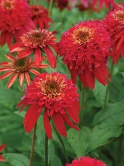 A fantastic coneflower with double-layered petals colored in intense raspberry rose. Exuberant flowering lasts through the summer heat, giving a dazzling, eye-catching show. An excellent choice for hot-color combinations in full sun gardens. Combine with vivid blue and rose phloxes, bright chartreuse green and purple perennials for an extra vibrant show-stopper. A sure magnet for busy butterflies and buzzing bees; a visual and auditory treat. PPAF