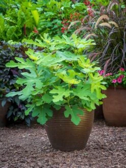 Pick sweet figs from patio-sized trees! ‘Fignomenal’ yields scrumptious fruits year-round, indoors and out. Dwarf plants max out around 30” tall and offer up an abundance of rich-brown, medium-sized figs with reddish interiors and honeyed flavor. Perfectly proportioned for pots and easy to move indoors for overwintering in northern areas. Enjoy figs every which way — fresh, dried, baked or grilled.