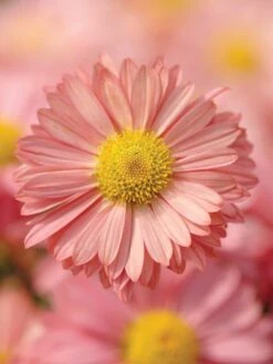 Daisies open a beautiful coral shading to lavender pink. Mammoth(TM) Daisies are exceptional garden mums, developed by the University of Minnesota for vigor and hardiness. Once established, they will grow to 3 feet tall, mounding to 4 feet across. Extra hardy compared to the common pot mums, plants overwinter dependably to Zone 3, and flower well in the south. With remarkably dense, tight habit, each plant gets covered with hundreds of colorful daisies. Does not need pruning, pinching or deadheading. Container size: 4″