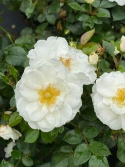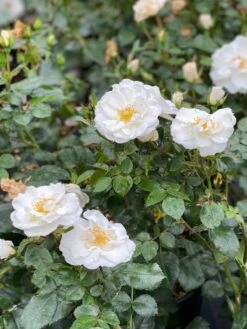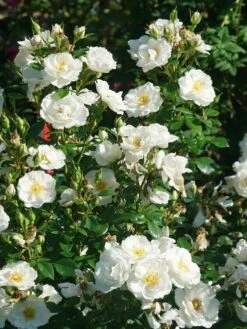 An elegant rose whose serenely pretty blooms burst on the scene—with silky white petals and vivid golden stamens—flowering through autumn. Blooms appear in such profusion that a single plant becomes a dramatic presence in the landscape. Flowers lavishly and continuously without deadheading. Exhibits determined disease resistance.