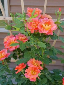 Bloom, bloom, bloom! Radiant and fragrant climbing rose produces a summer-long floral flurry of vibrant orange and pink flowers with bright-yellow eyes. With a neat, dense habit, ‘Rise Up Emberays’ excels as both shrub and climber—happily clambering up walls, trellises or columns. Big, showy blooms with long stems make for beautiful bouquets. Disease-resistant.